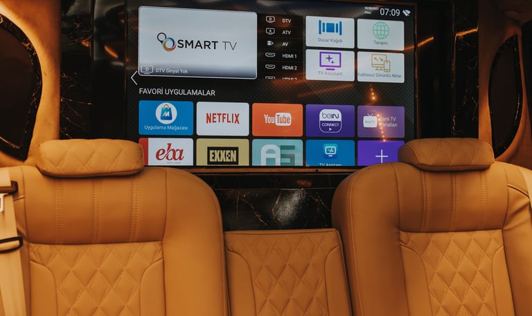 5 Kişilik Veya 6 Kişilik Vıp araç hizmeti Buzdoladı - TV - Masa - Ses sistemi